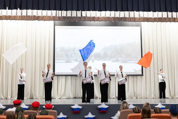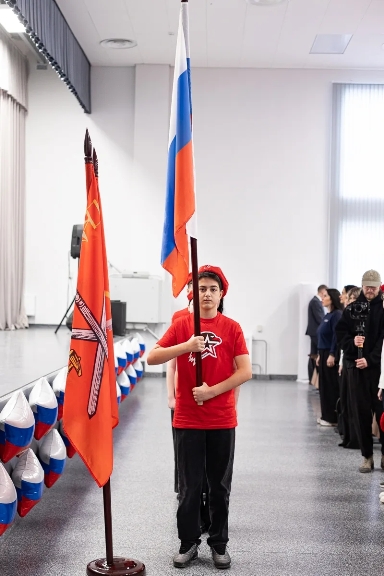 Мероприятие началось с торжественного выноса флага Российской Федерации и исполнения Государственного гимна РФ.